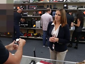 Seksowna bizneswoman z dużymi cyckami pieprzona za bilet lotniczy. Seksowna bizneswoman z dużymi cyckami sprzedaje zegarek na nadgarstek i dostaje porządne jebanie na bilet lotniczy z powrotem do domu