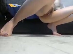 Naturalna blond MILF rozbiera się na zewnątrz