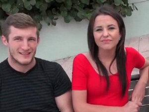 Gorąca brunetka namówiona do seksu za twardą kasę. Brunetka dostaje zapłatę, by dołączyć do napalonej pary w hardcore'owym trójkącie